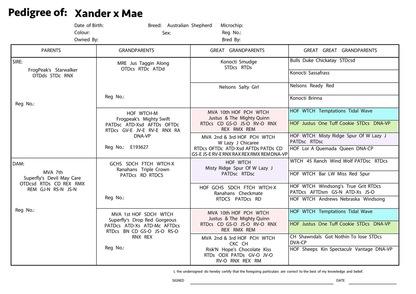Tarot Synergy Superfly Written in the Cards, CGC, TKI WTCH FROGPEAK’S STARWALKER RNX x PCH WTCH SUPERFLY’S DEVIL MAY CARE RTDs CDX GJ-N JJ-O RS-N RAX REX RMX REMX Red bi 3/30/25 ASCA/AKC registered